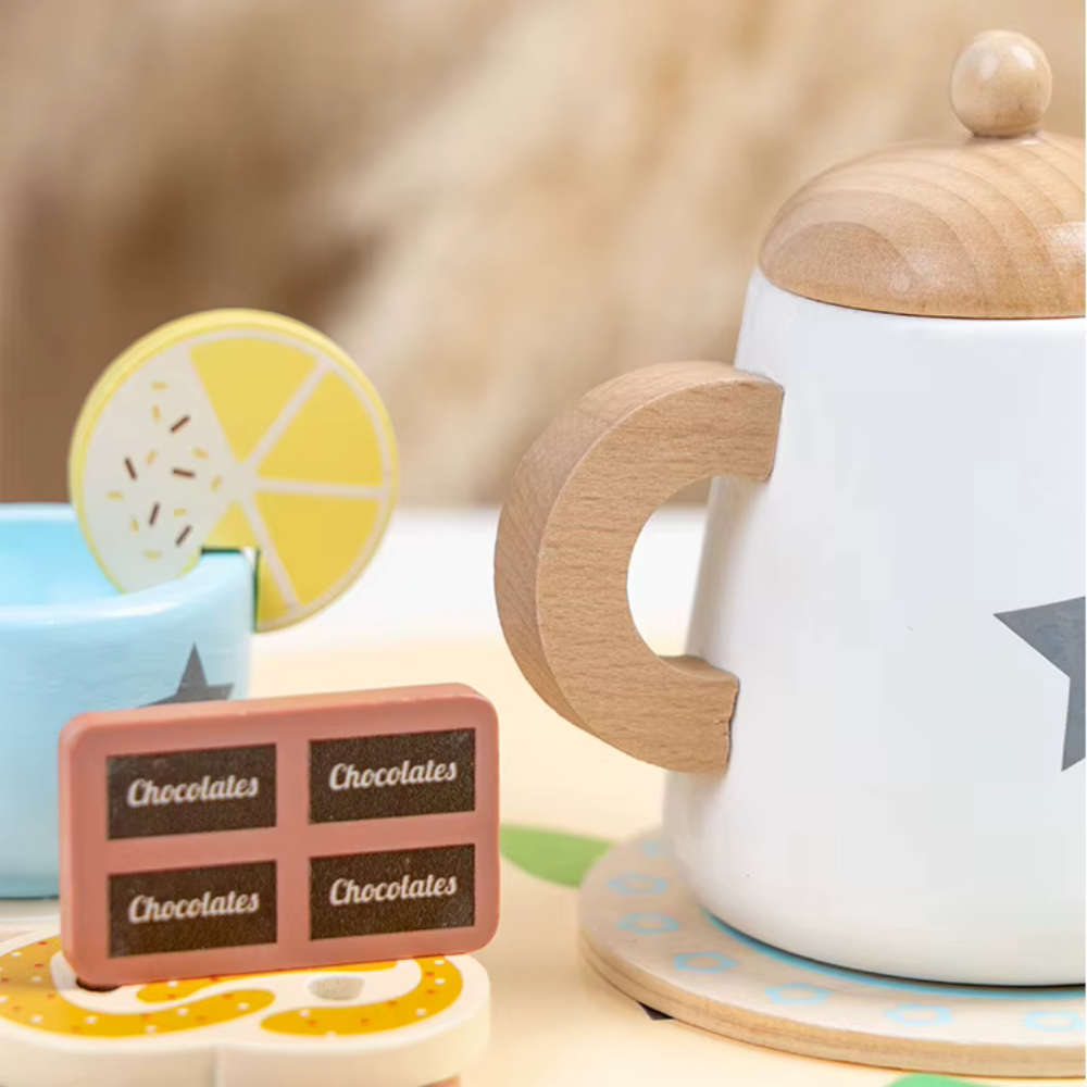 Für unser Tea Time Friends Spielset wird ausschließlich ausgewähltes, robustes Holz verwendet – ein echtes Naturmaterial, das nicht nur warm und angenehm in der Hand liegt, sondern auch frei von schädlichen Stoffen ist.
